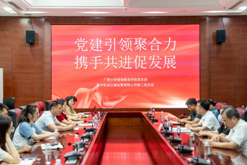 为深入贯彻落实党的二十大和二十届三中全会精神,深入贯彻落实习近平总书记关于教育的重要论述以及关于广西工作论述的重要要求,进一步凝聚共识,推动继续教育业务交流与改革发展,627日,继续教育学院党支部与南宁轨道交通运营有限公司第二党支部联合开展“党建引领聚合力,携手共进促发展”主题党日活动。