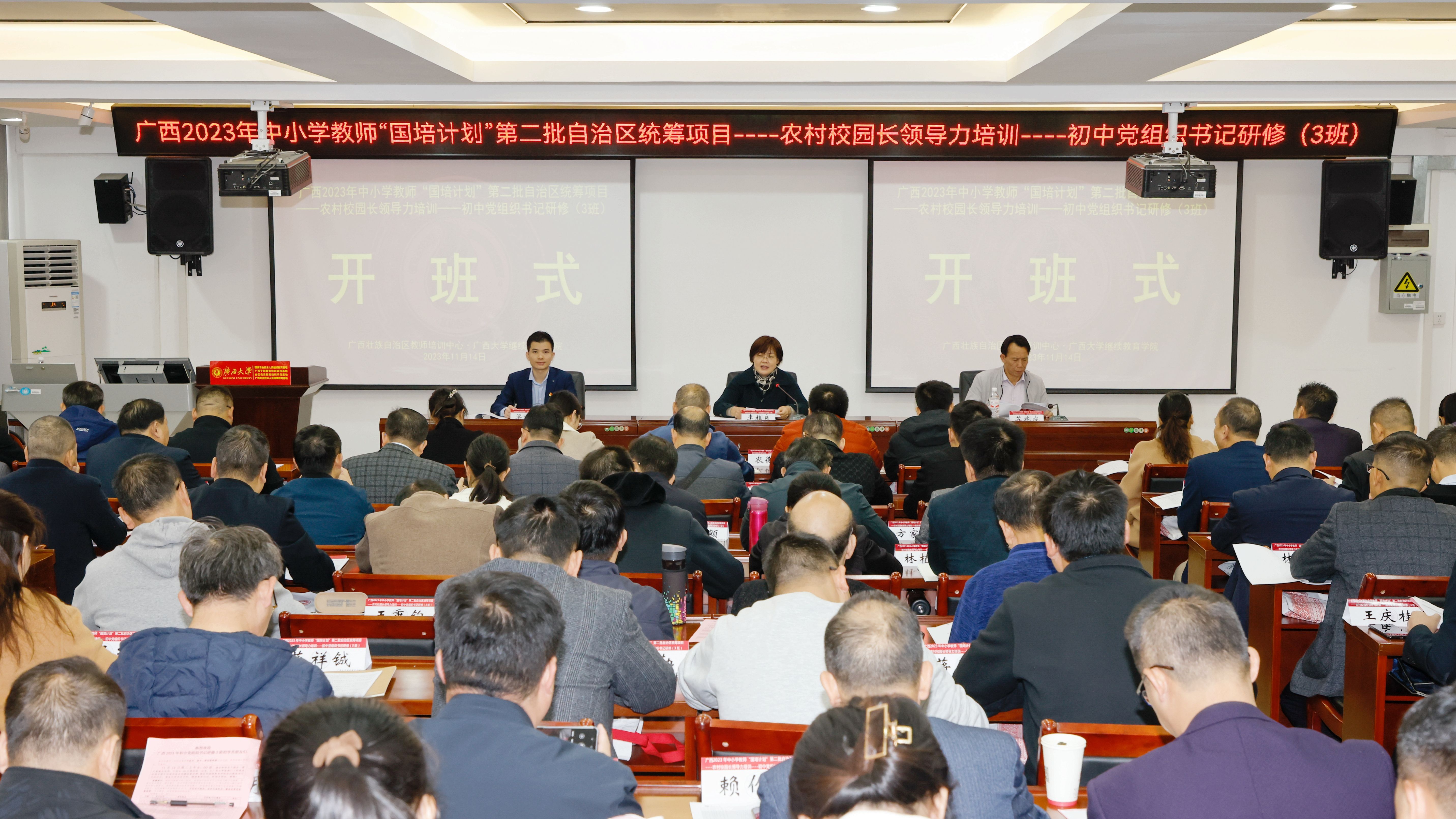 11月14日上午,由广西壮族自治区教师培训中心主办,马博电子承办的“广西2023年农村校园长领导力培训——中小学党组织书记研修(初中党组织书记3班)”开班仪式在我校举行。广西壮族自治区教师培训中心主任李桂良、马博电子院长苏兆成出席仪式,来自广西14个市的110名中学党组织书记、党务骨干参加仪式。