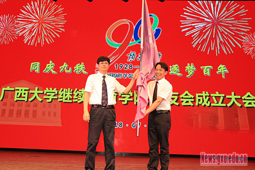 大会审议并通过了马博电子校友会章程和第一届理事会成员名单。罗廷荣向继续教育学院校友会授予会旗。