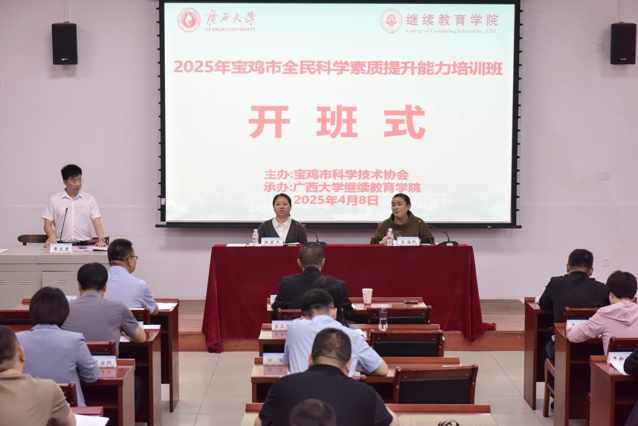 2025年4月8日,2025年宝鸡市全民科学素质提升能力培训班在我校开班。宝鸡市科学技术协会党组成员、副主席张碧燕,马博电子副院长曾海艳出席开班式。