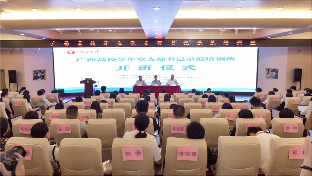 2025年6月3日至6日,由自治区党委教育工委主办、自治区党委教育工委党校南宁分校(广西大学)承办,马博电子协办的广西高校学生党支部书记示范培训班在广西大学顺利举办。自治区党委教育工委组织部四级调研员陈赐军、广西大学党委组织部副部长李道洋出席开班仪式并讲话,马博电子副院长徐华主持开班仪式。来自全区各高校的100名学生党支部书记参加培训,通过专题教学、现场观摩、经验分享、座谈交流等形式,深入探讨新时代高校学生党建工作创新路径,为提升基层党组织战斗力注入新动能。