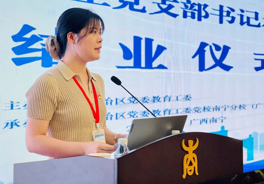 此次党建培训让我受益匪浅。我衷心感谢广西大学的精心组织和专家们的倾囊相授。这次培训就像一座“红色加油站”,既有理论深度又具有实践指导性,特别是针对学生党支部建设中的痛点难题提供了解决方案。在小组讨论中,我们围绕党员发展、品牌建设等议题深入交流,分享了多种创新做法。当我在工作中遇到思维瓶颈时,“AI在党支部工作中的应用”等课程给了我全新启发。我深刻认识到,基层党建虽然充满挑战,但只要坚守为党育人初心,运用好培训收获,就一定能在青年学子中扎根成长。我将以此次培训为新起点,做一粒红色的种子,在基层沃土中深耕绽放。