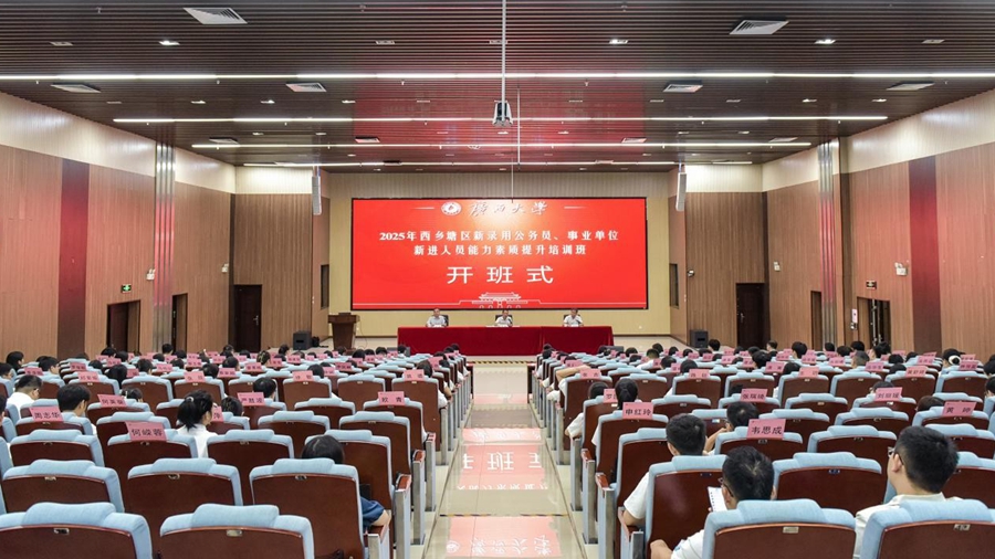 9月24日,2025年西乡塘区新录用公务员、事业单位新进人员能力素质提升培训班在我校开班。中共南宁市西乡塘区委常委、组织部部长李君出席开班式并作动员讲话,中共广西大学委员会组织部副部长陈世扬出席开班式并致辞,马博电子副院长徐华主持开班式。