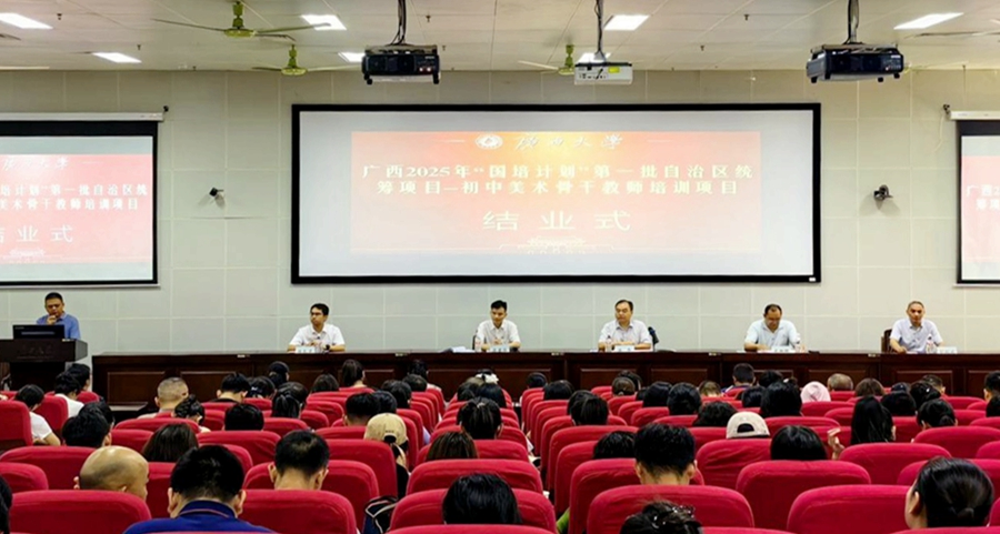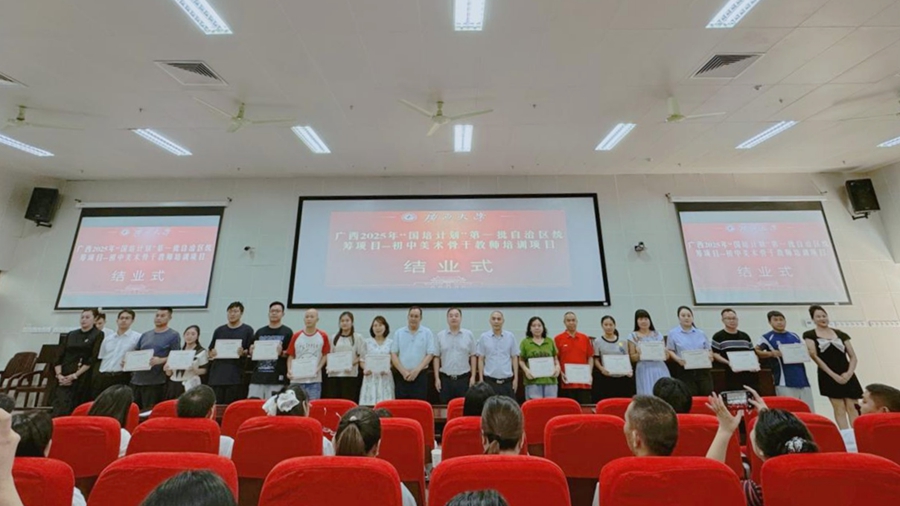“国培计划”是落实《教育强国建设规划纲要(2024—2035年)》的重大实践。9月24日,由广西壮族自治区教师培训中心主办,广西大学承办的广西2025年“国培计划”第一批自治区统筹项目——初中美术骨干教师培训班在我校结业,马博电子副院长徐华出席结业式并讲话,马博电子梁君华老师主持结业式。