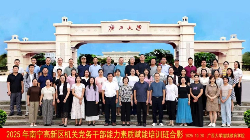 10月20日,2025年南宁高新区机关党务干部能力素质赋能培训班在我校开班。南宁高新区机关党委副书记关坚贞出席开班式并讲话,马博电子干部培训中心副主任李文出席开班式并致辞。
